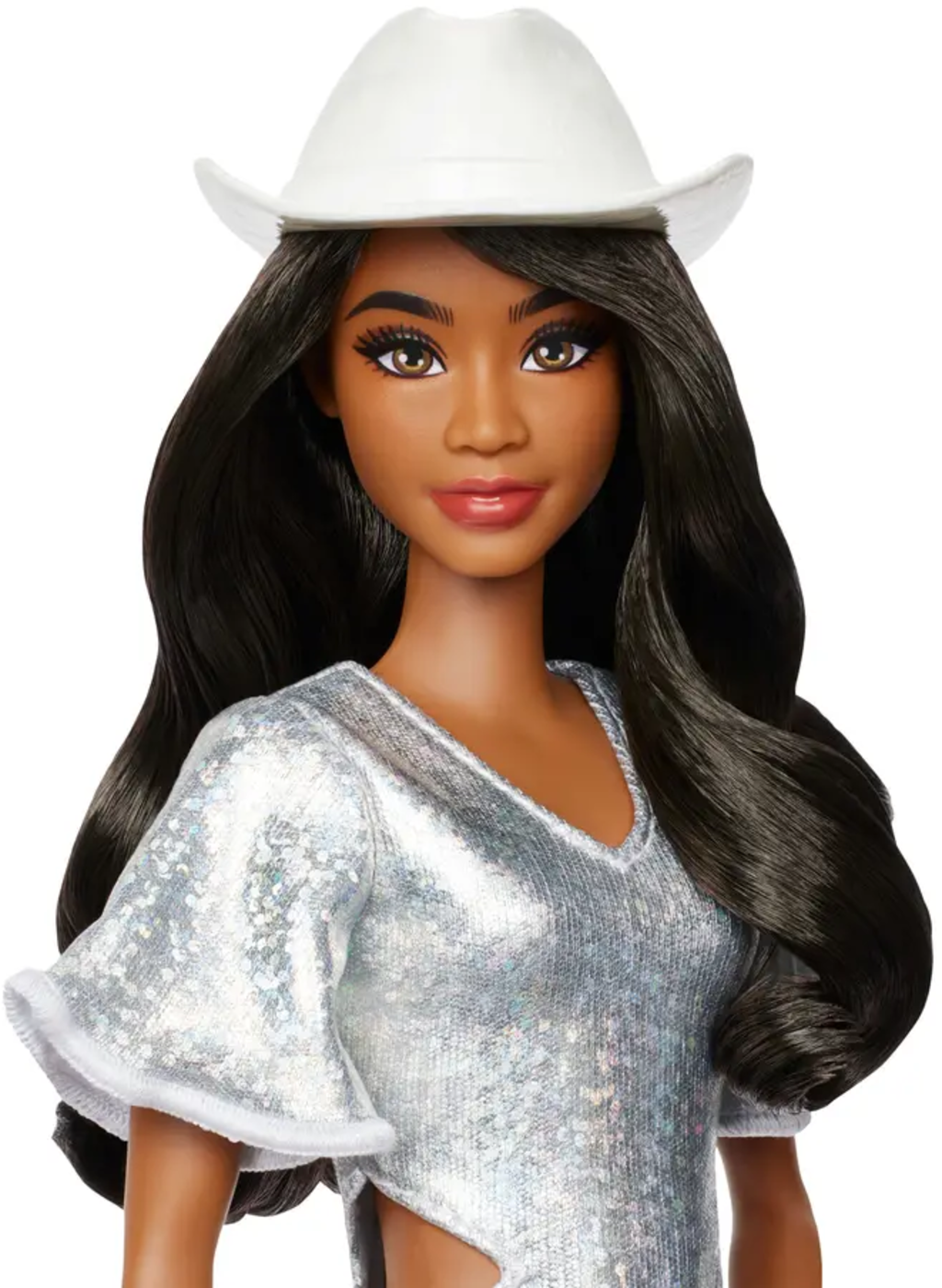 Die Barbie Fashionistas-Puppe bringt Spaß, Mode und Persönlichkeit in jedes Kinderzimmer! Mit ihrem funkelnden silbernen Kleid, dem weißen Cowboyhut und den Cowboystiefeln ist sie perfekt für kreative Rollenspiele. Kinder ab 3 Jahren können ihre Modefantasie ausleben und eigene Geschichten erfinden – von wilden Partynächten bis hin zu Abenteuern auf dem Land.