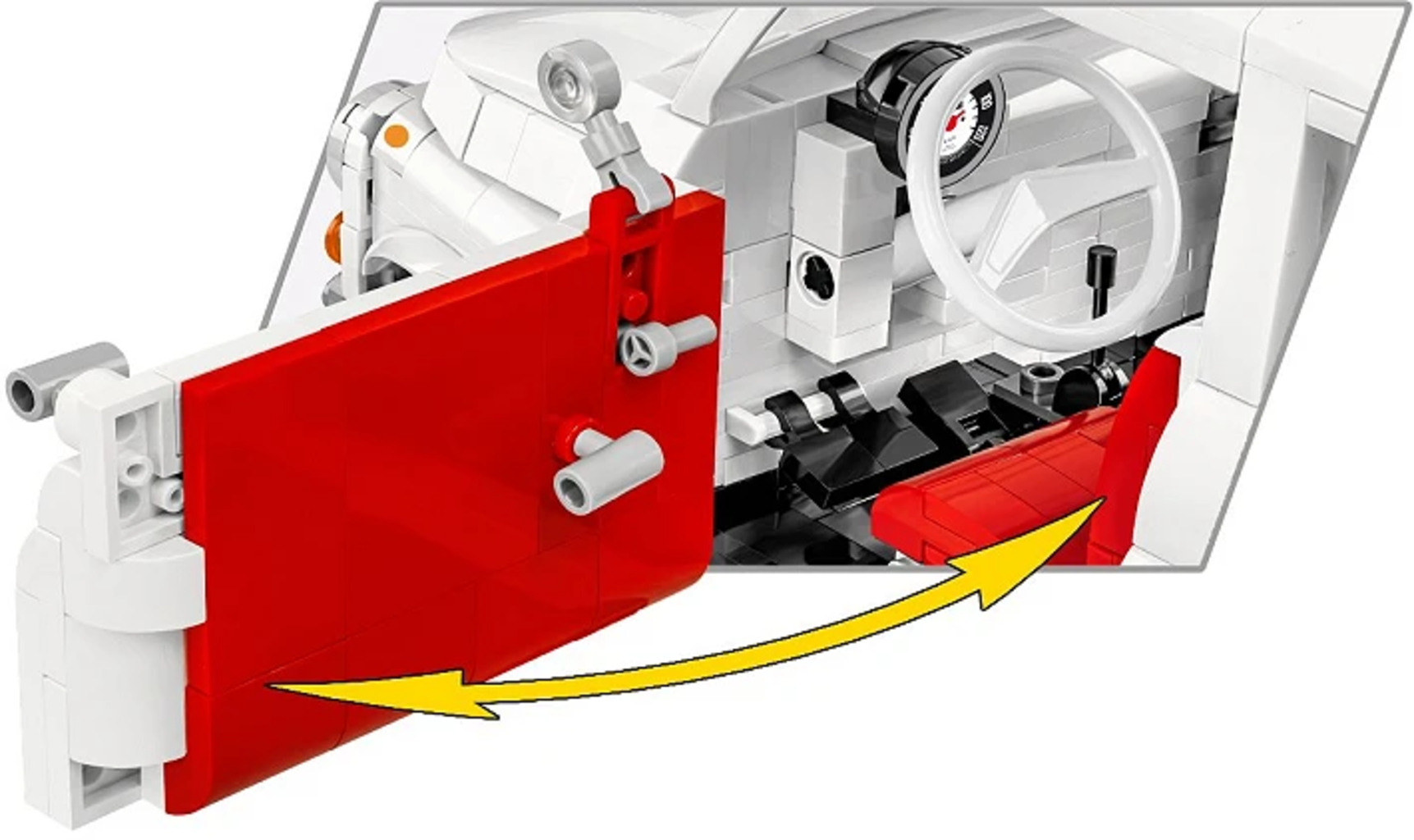 Entdecke die vielen beweglichen Funktionen: Öffne die Türen, wirf einen Blick in den Motorraum oder drehe am Lenkrad, um die Räder tatsächlich zu bewegen. Dank der speziell entworfenen Windschutzscheibe und der hochwertigen Drucke sieht dein kleiner Sportwagen absolut authentisch aus – ganz ohne Aufkleber.