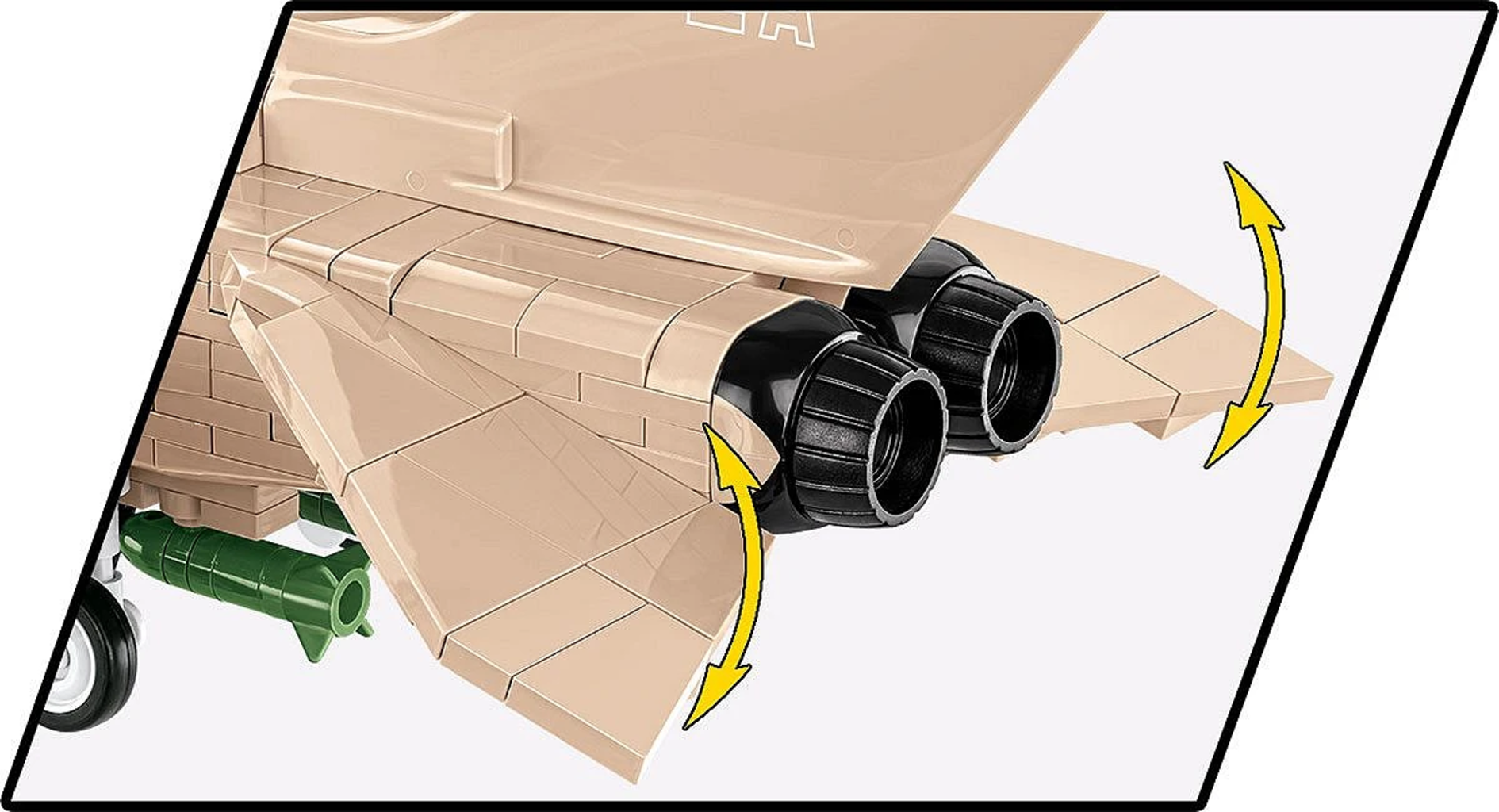 In der aufklappbaren Kabine finden die beiden beiliegenden Piloten-Figuren Platz, während du dank des abnehmbaren Fahrwerks entscheidest, ob du gerade mitten im Flugmanöver bist oder den Tornado stolz auf dem mitgelieferten Ausstellungsständer präsentierst.