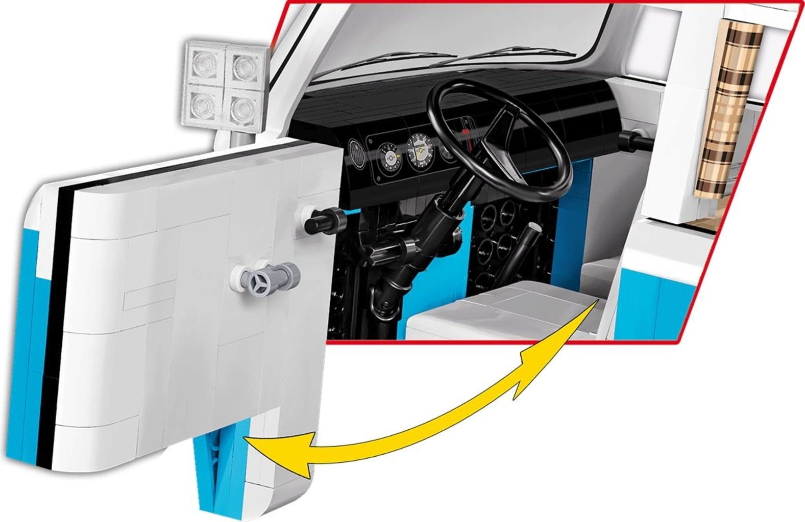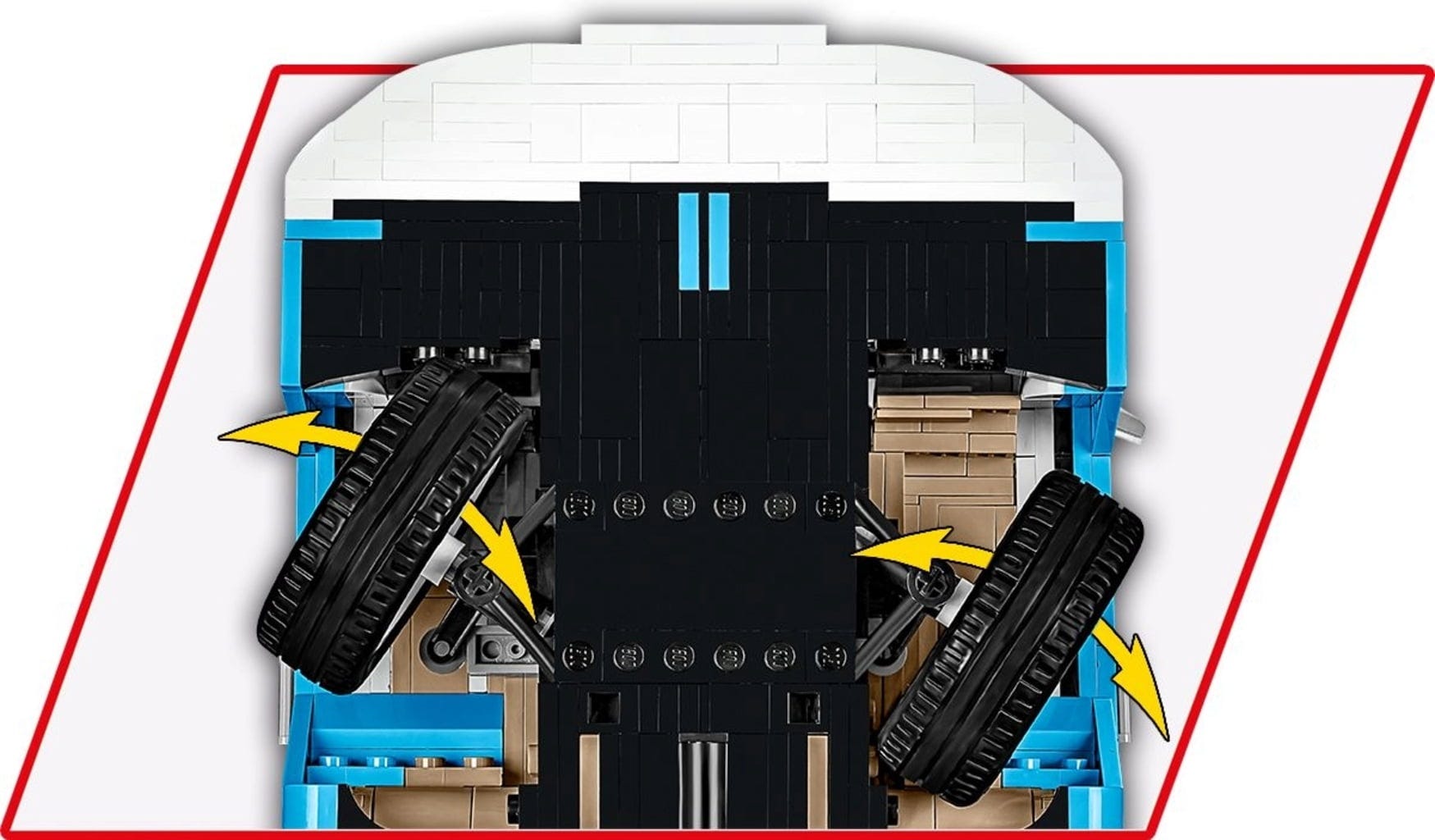 Auch der Innenraum überzeugt mit viel Liebe zum Detail, von den umklappbaren Rückenlehnen bis hin zu den bedruckten Vorhängen. Wie bei COBI üblich, ist das Set komplett frei von Aufklebern – alle Grafiken sind langlebig auf die Steine gedruckt. Mit über 2.300 Teilen ist dieser Bulli die perfekte Wahl für alle, die eine echte Bauherausforderung suchen und den Geist der Freiheit in ihr Regal holen wollen.