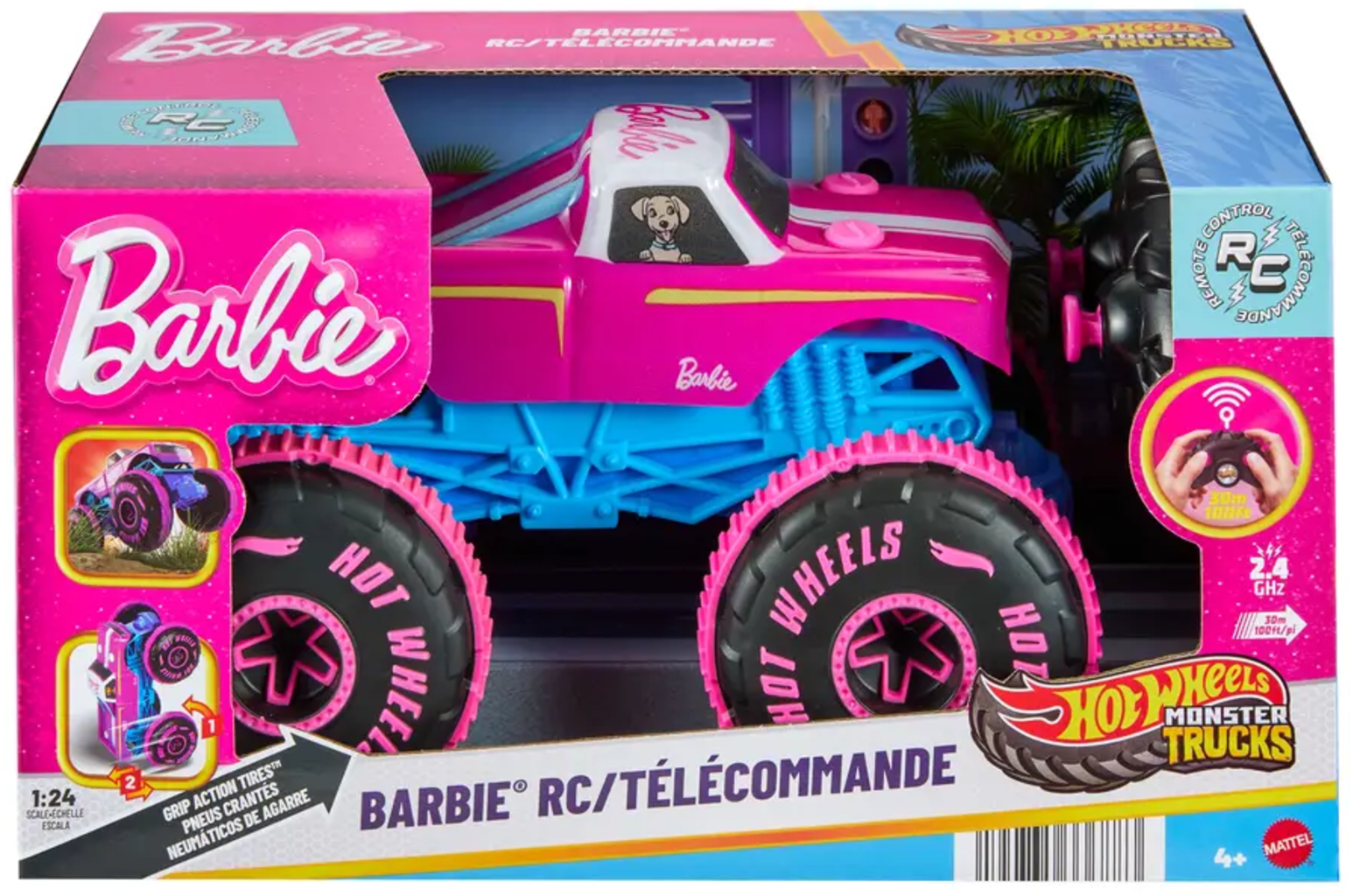 Mit dem Hot Wheels Barbie Monster Truck wird jedes Spiel zu einem echten Abenteuer! Der stylische Truck in Rosa kombiniert starke Performance mit süßem Design und sorgt für jede Menge Fahrspaß – egal ob drinnen oder draußen. Dank der großen Reifen und der starken Fernsteuerung meistert er jedes Gelände und ist perfekt für coole Stunts, Wheelies und spannende Rennen.