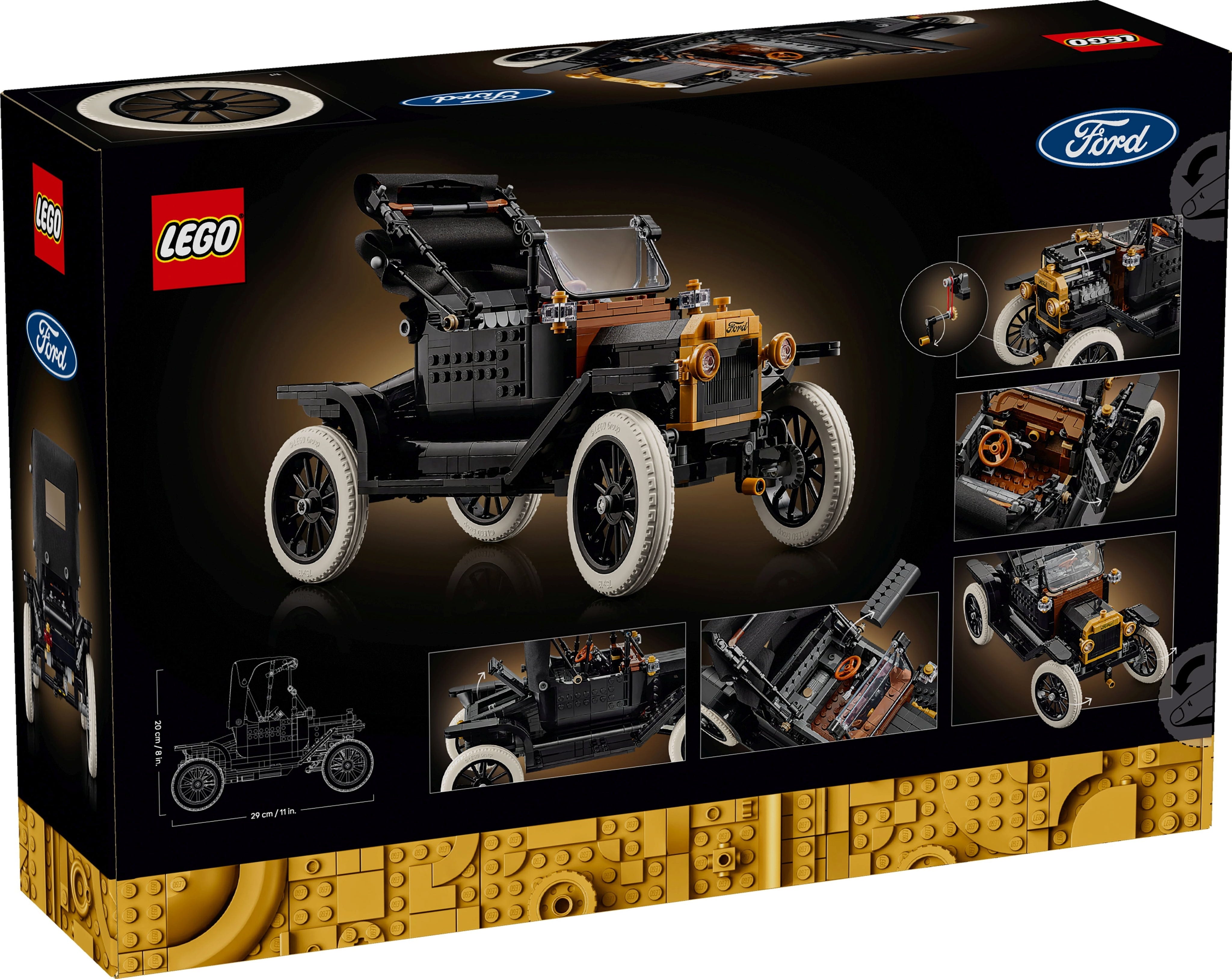 Autoliebhaber und Oldtimer-Fans freuen sich gleichermaßen über dieses detailreiche Modell einer wahrhaften Legende der Automobilgeschichte. Das Model T von Ford bringt den Charme der 1910er-Jahre zurück: die schwarze Karosserie mit goldenen Details und weißen Reifen auf Speichenfelgen und detailreiche sowie authentische Extras. Das Set ist eine liebevoll gestaltete Verbindung aus Modellbau und Faszination für klassische Fahrzeuge.