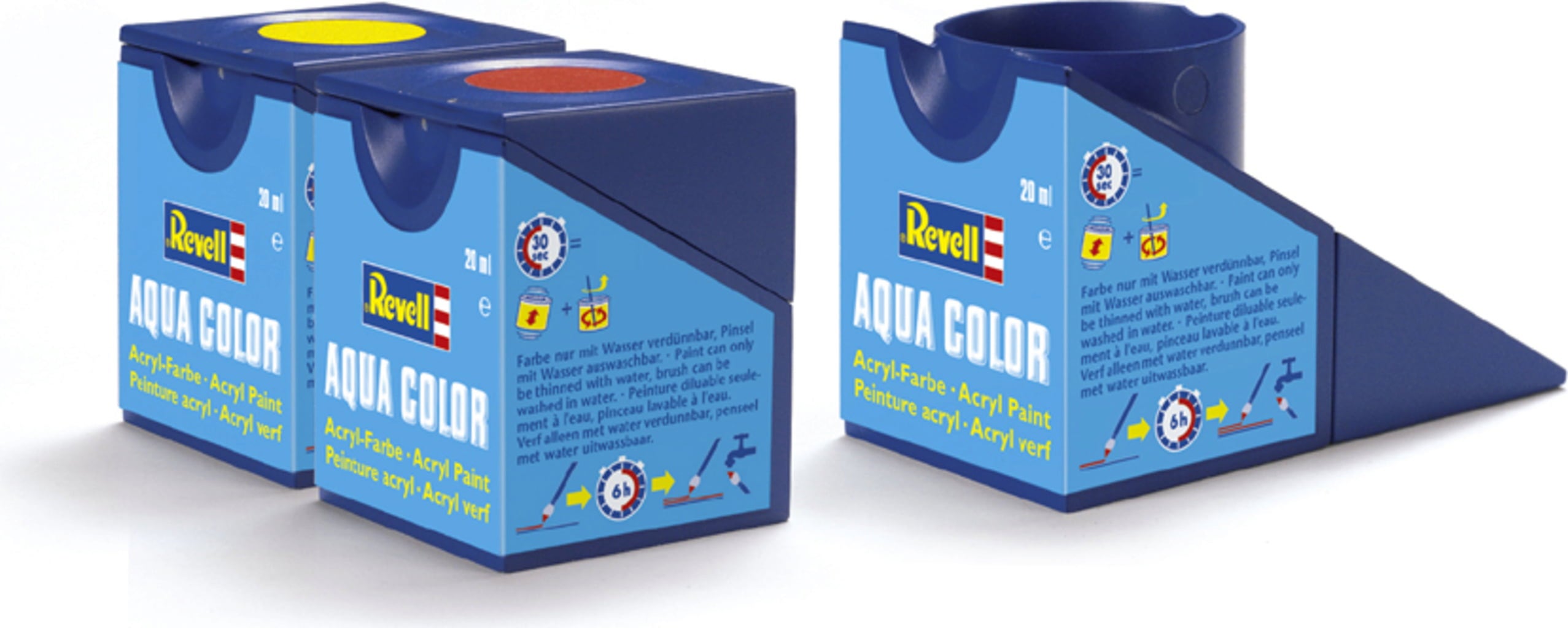 Die Revell Aqua Color- Farben sind in völlig neuartigen 18-ml-Behältern und lassen sich ideal verarbeiten: