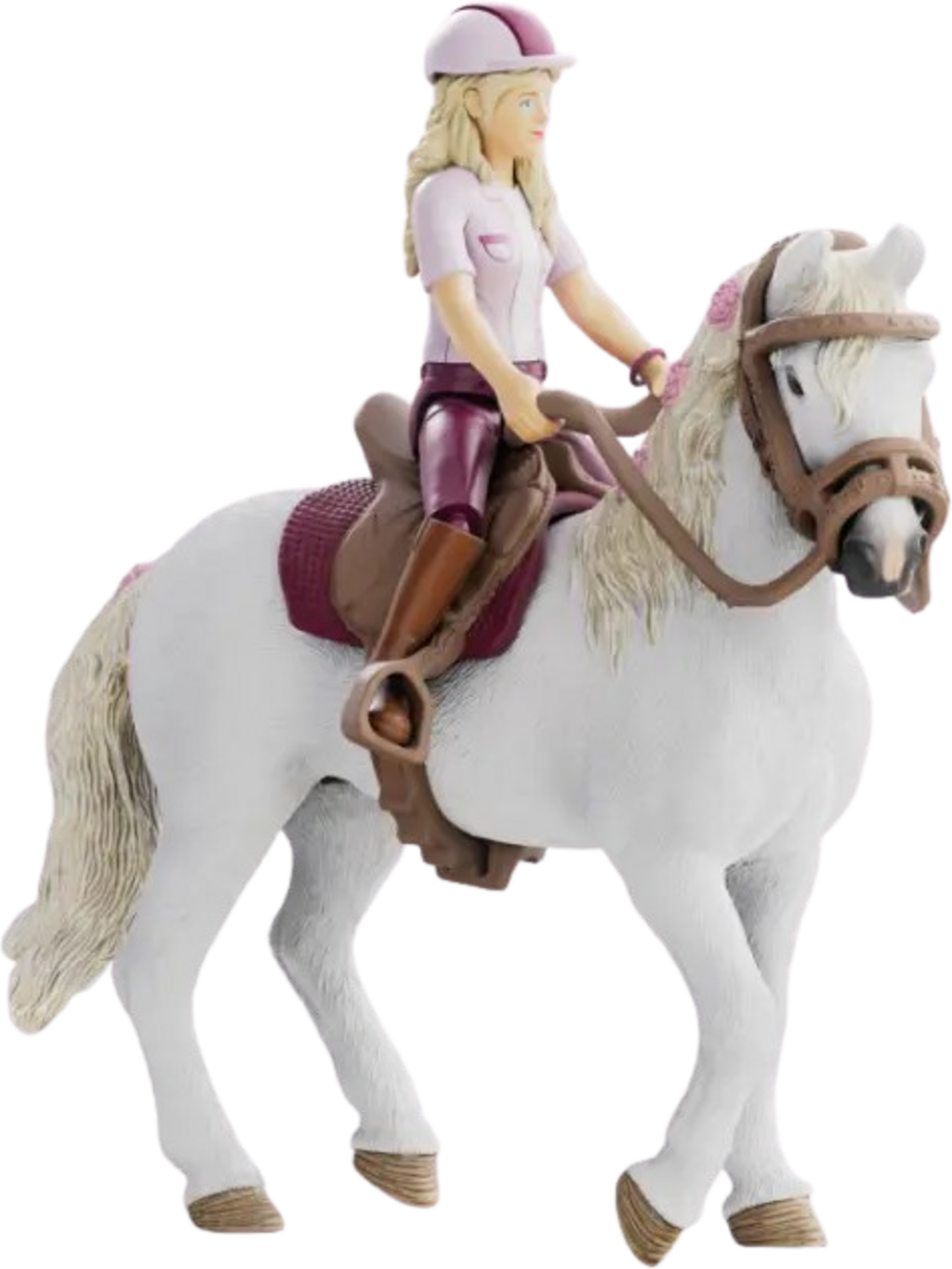 Sofia und ihre wunderschöne Stute Blossom sind ein echtes Dream-Team. Mit den zarten Blüten in Mähne und Schweif und Sofias elegantem Reit-Outfit wird jedes Abenteuer im Horse Club zum besonderen Erlebnis. Perfekt zum Spielen, Sammeln und Träumen – für alle kleinen Pferdefans, die Magie und Freundschaft lieben.