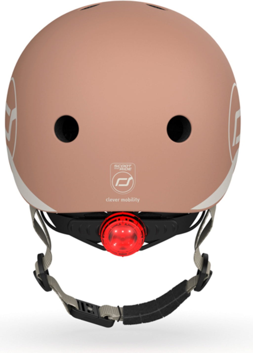 Der Scoot and Ride Kinderhelm in Größe S passt sich dank des stufenlosen Größenverstellsystems am Hinterkopf optimal an den Kopfumfang (51–55 cm) deines Kindes an und sorgt jederzeit für sicheren Halt. Das integrierte batteriebetriebene LED-Licht am Verstellrad erhöht die Sichtbarkeit bei Dämmerung oder schlechtem Licht – für mehr Sicherheit im Straßenverkehr.
