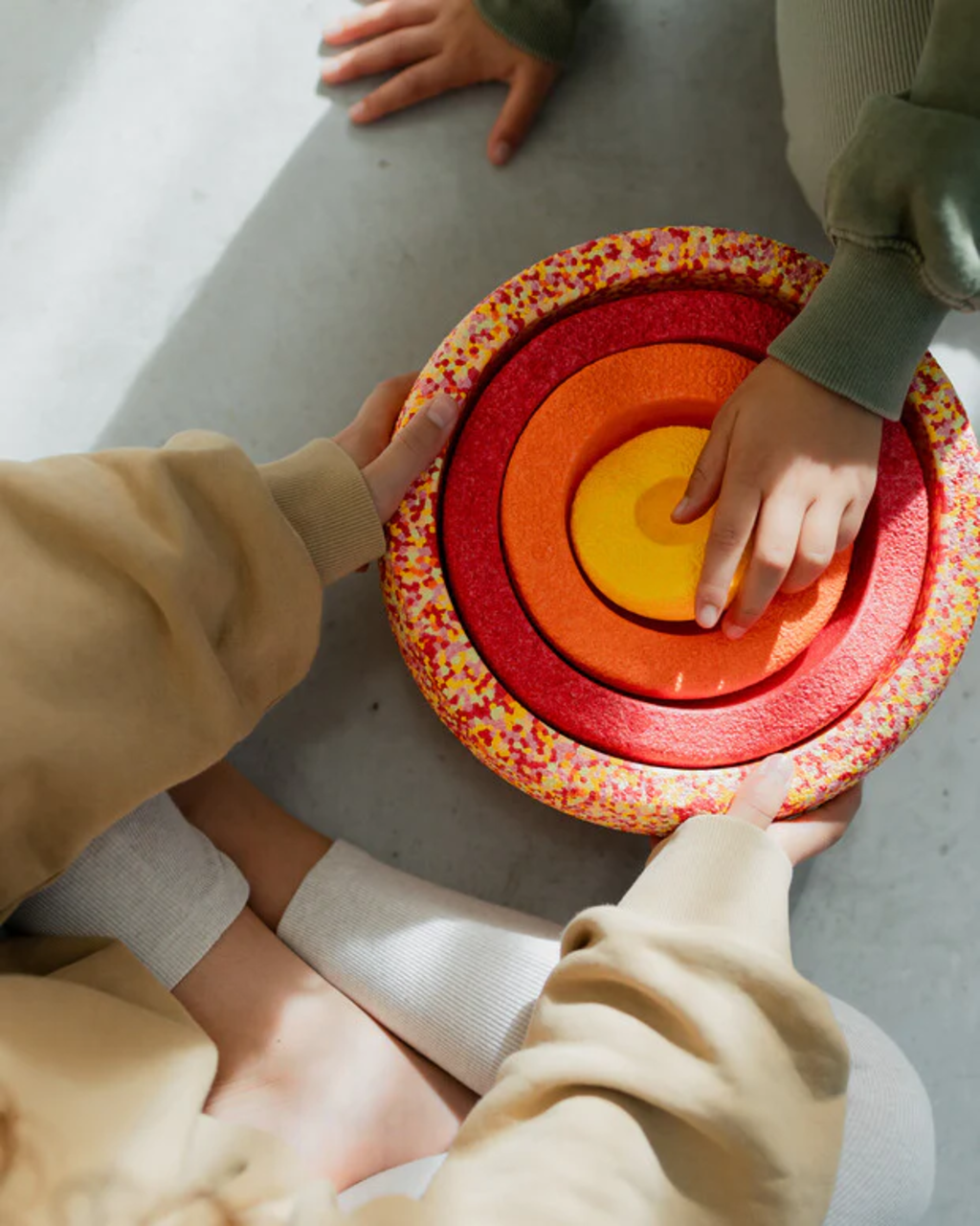 Die Stapelstein® Inside Sets bringen ruhige, harmonische Farben ins Spiel und fördern kreative Bewegung im Alltag. Kinder können damit bauen, sortieren, sammeln oder in fantasievolle Spielwelten eintauchen – egal ob zu Hause, draußen oder unterwegs. Alle Farben lassen sich frei kombinieren und passen sich jeder Spielidee flexibel an.