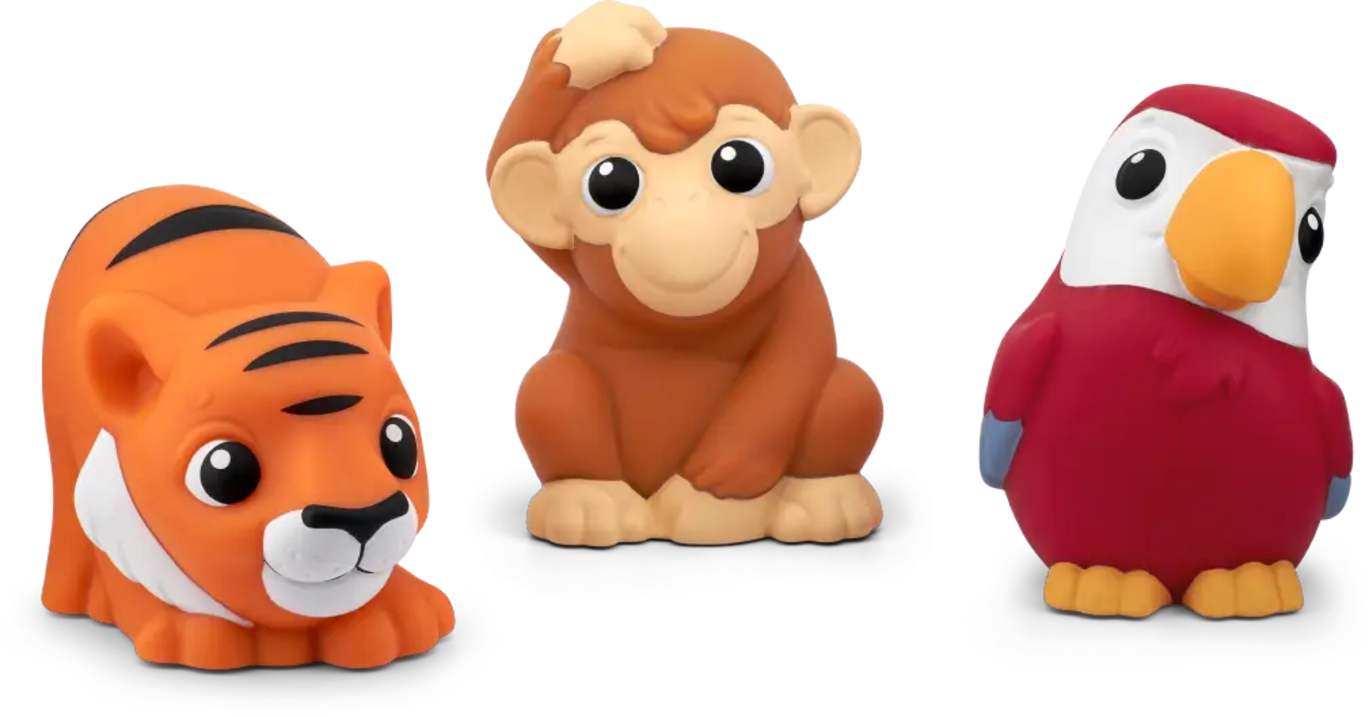 Bereit für die Expedition? Mit dem My First Tonies – Dschungel Set ziehen Tiger, Affe und Papagei in dein Kinderzimmer ein. In altersgerechten Geschichten lernen kleine Entdecker:innen spielerisch, wie man mutig brüllt, geschickt klettert oder farbenprächtig durch den Urwald fliegt.