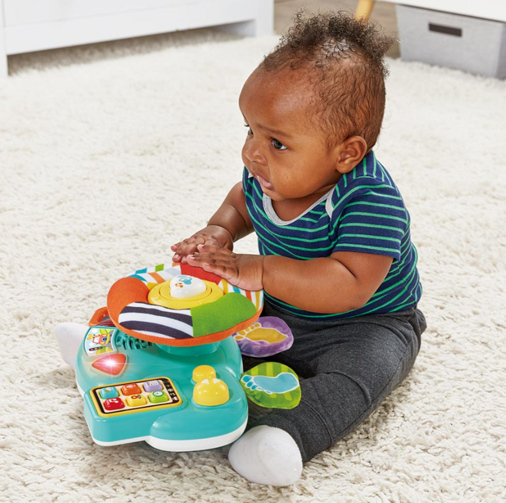 Das VTech Baby Babys Lernlenkrad bringt kleine Entdecker ans Steuer. Mit Hupe, Blinkern, Rasselperlen, farbigen Tasten und beweglichen Elementen erleben Kinder interaktiven Fahrspaß und fördern spielerisch ihre Sinne, Farben- und Geräuscherkennung sowie motorische Fähigkeiten.