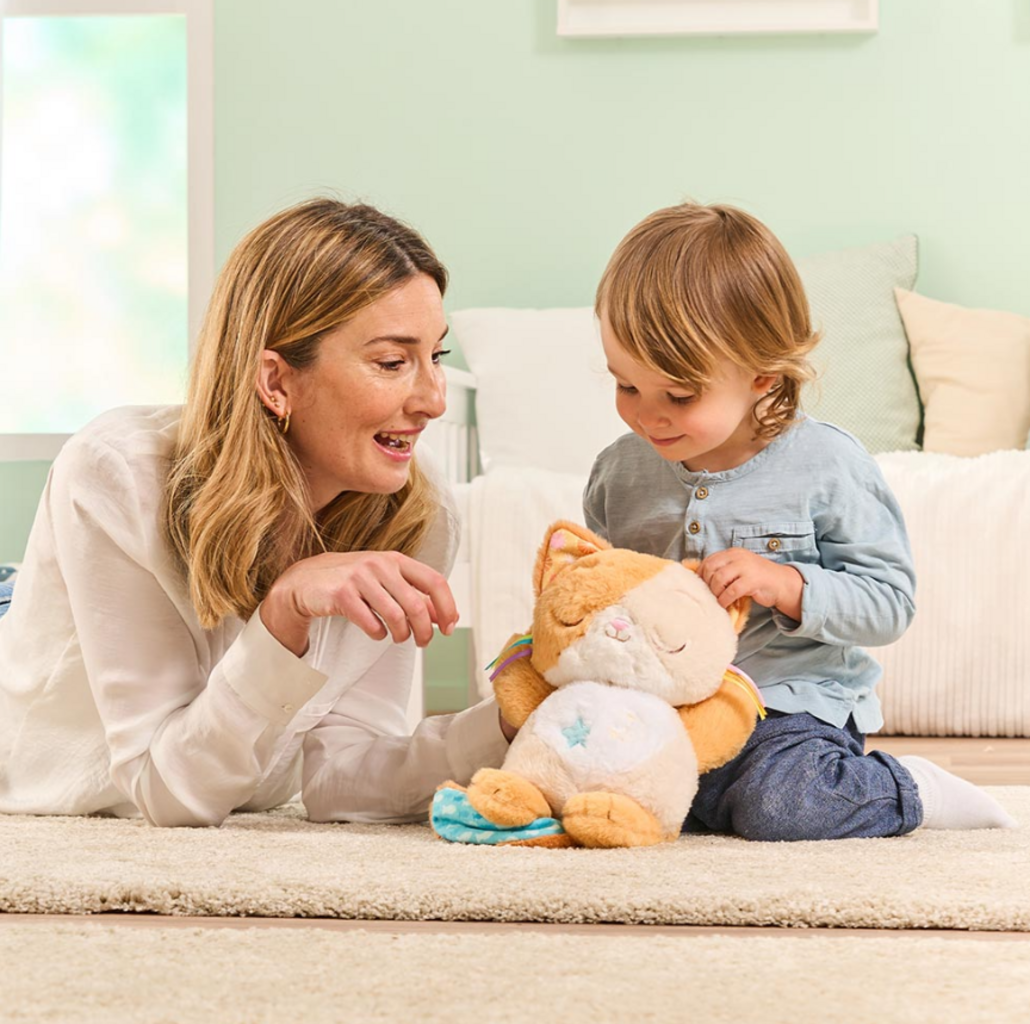 Das Schlummer-Kätzchen begleitet kleine Babys sanft in den Schlaf. Mit leuchtenden Lichtern, beruhigender Musik und liebevollen Bewegungen sorgt es für gemütliche Kuschelstunden und süße Träume. Perfekt für ruhige Momente und erste Kuschelabenteuer.